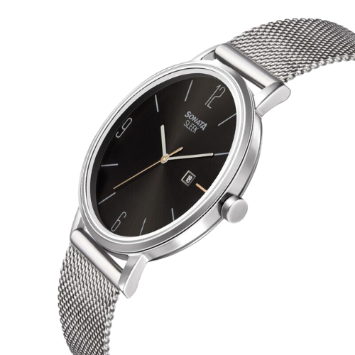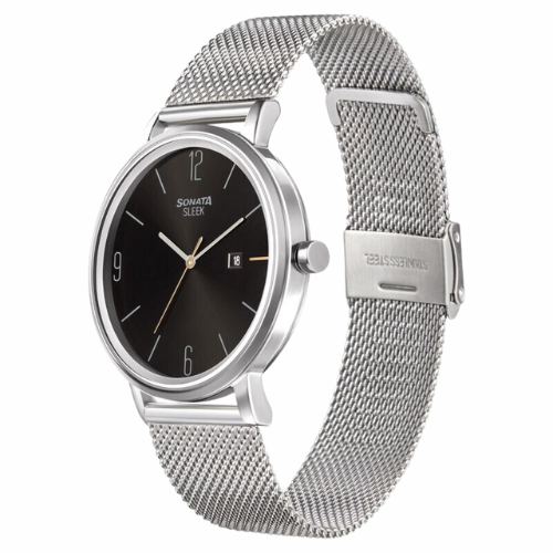 - Name:Sonata Quartz Analog with Date Black Dial Stainless Steel Strap Watch for Men