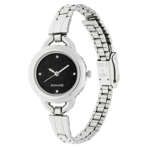 - Name:Sonata Quartz Analog Black Dial Stainless Steel Strap Watch for Women