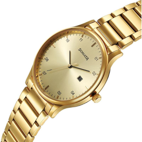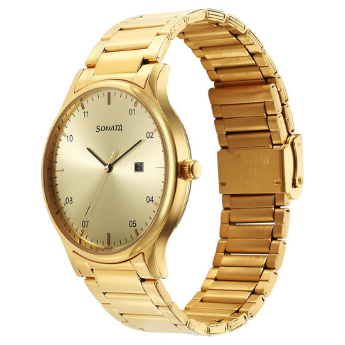 - Name:Sonata Quartz Analog with Date Champagne Dial Watch for Men