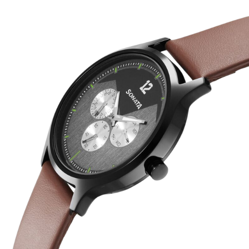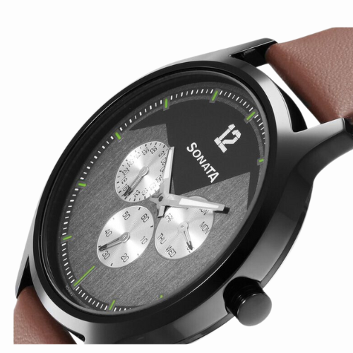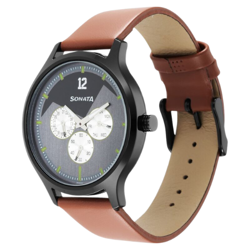 • Name:Sonata Force Quartz Multifunction Grey Dial Leather Strap Watch for Men