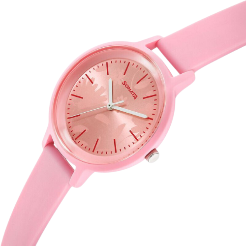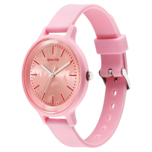 • Name:Sonata Splash Quartz Analog Pink Dial Plastic Strap Watch for Women