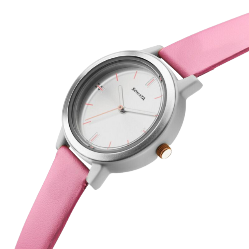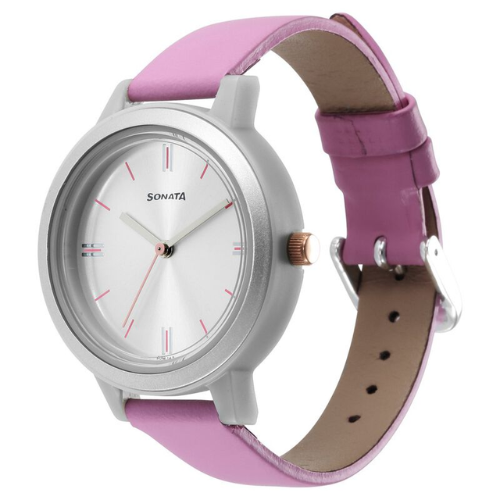 • Name:Sonata Pop Silver Dial Women Watch With Leather Strap