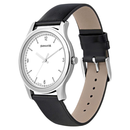 - Name:Sonata Quartz Analog White Dial Leather Strap Watch for Men