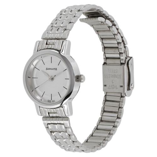 - Name:Sonata Quartz Analog White Dial Stainless Steel Strap Watch for Women