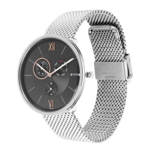 NameTitan Slim Quartz Multifunction Black Dial Stainless Steel Strap Watch For Men