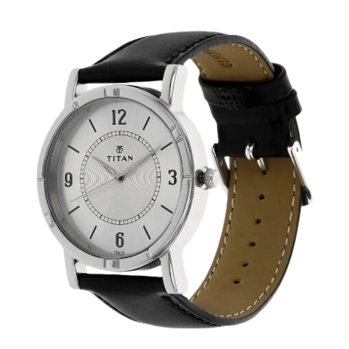 Titan Quartz Analog Silver Dial Leather Strap Watch For Men